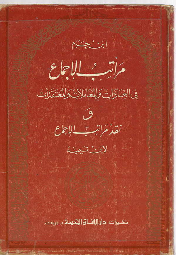 والفقهاء من أصحاب الشافعي وأحمد وغيرهم وافترى عليهم، ولم يقل أحد منهم ذلك لكن أراد أن يروّج عقيدته المفتراة بين المسلمين على ضعاف الأفهام، ويربأ بنفسه عن أن يقال إنه وافق الفلاسفة في هذه العقيدة وقد ردّ على ابن حزم في نقد مراتب الإجماع لنقله الإجماع على أن الله لـم يزل وحده ولا شىء غيره معه، وأن المخالف بذلك كافر باتفاق المسلمين، فقال ابن تيمية بعد كلام ما نصه "وأعجب من ذلك حكايته الإجماع على كفر من نازع أنه سبحانه لم يزل وحده ولا شىء غيره معه". ا.هـ. وعبارته هذه صريحة في اعتقاده أن جنس العالم أزلي لم يتقدمه الله بالوجود..