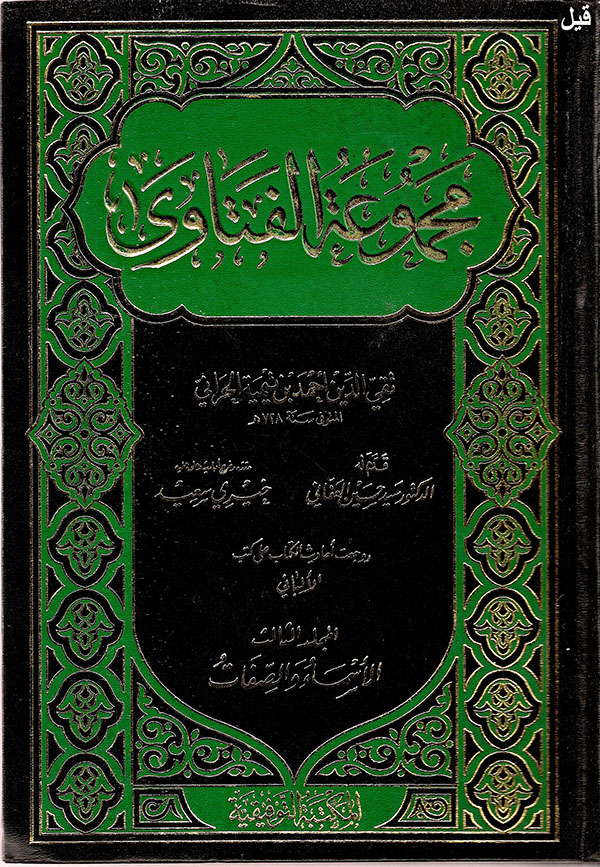 وقال في كتابه الفتاوى ما نصه "ومن هنا يظهر أيضا أن ما عند المتفلسفة من الأدلة الصحيحة العقلية فإنما يدل على مذهب السلف أيضا، فأن عمدتهم في "قدم العالم " على أن الرب لم يزل فاعلاً، وأنه يمتنع أن يصير فاعلاً بعد أن لم يكن، وأن يصير الفعل ممكنًا له بعد أن لم يكن، وهذا وجميع ما احتجوا به إنما يدل على قدم نوع الفعل" اهـ.
